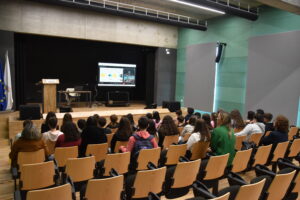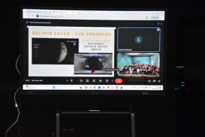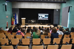 Durante a sessão a oradora explicou, de forma clara e envolvente, como ocorrem os eclipses solares e lunares, bem como a sua importância científica, dando foco ao eclipse solar que irá acontecer em Portugal, no dia 12 de agosto de 2026.